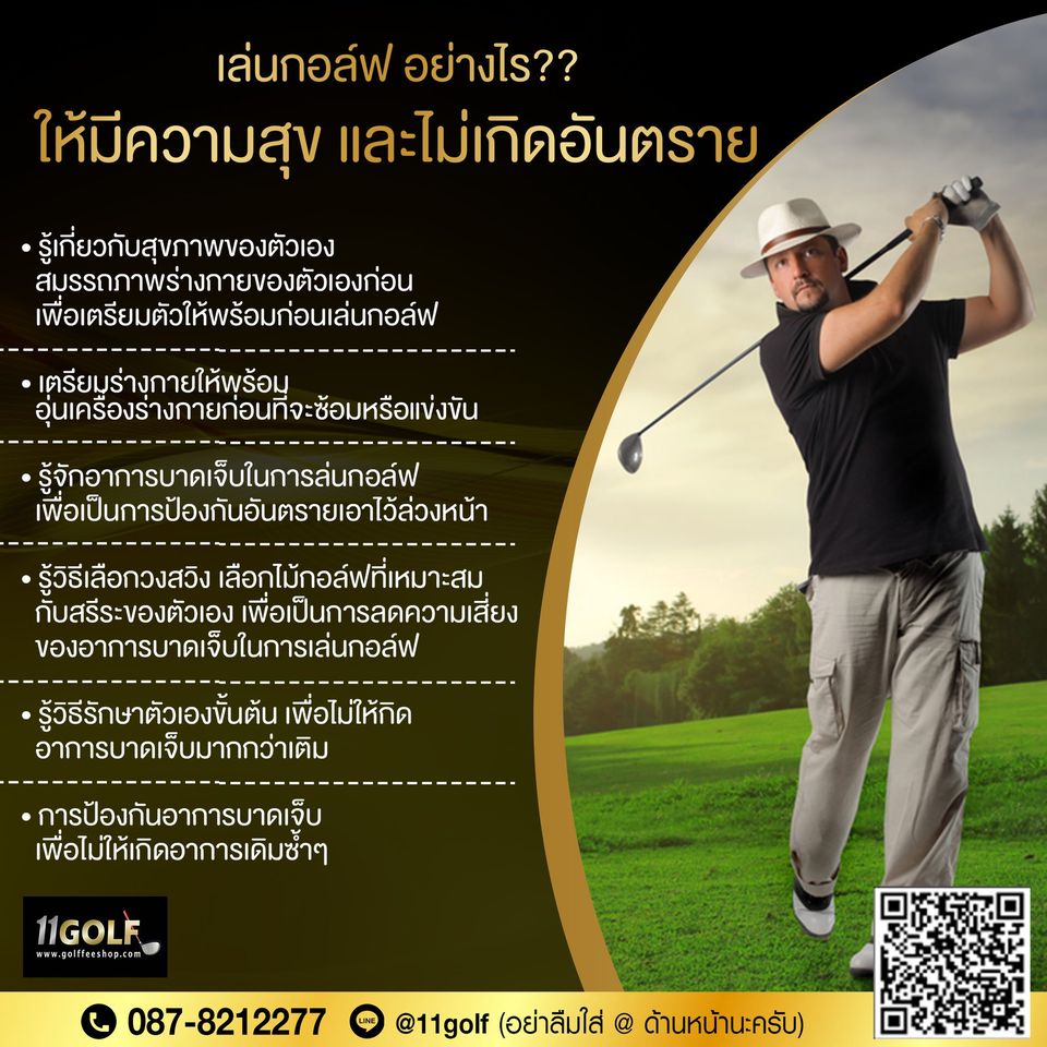 เล่นกอล์ฟ อย่างไร? ให้มีความสุข และไม่เกิดอันตราย - รู้เกี่ยวกับสุขภาพของตัวเอง - เตรียมร่างกายให้พร้อม - รู้จักอาการบาดเจ็บในการเล่นกอล์ฟ - รู้วิธีเลือกวงสวิง เลือกไม้ให้เหมาะสม - รู้วิธีรักษาตังเองขั้นต้น เพื่อไม่ให้เกิดการบาดเจ็บกว่าเดิม -การป้องกันอาการบาดเจ็บ เพื่อไม่ให้เกิดอาการเดิมซ้ำๆ ▬▬▬▬▬▬▬▬▬▬▬▬▬▬▬ ติดต่อสอบถาม/สั่งซื้อสินค้า TEL : 0878212277 LINEID : @11golf LINE : https://line.me/R/ti/p/%4011golf