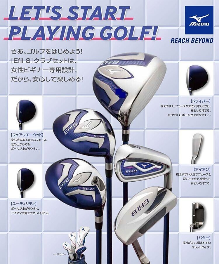 Full Set รุ่น EFIL-8 Ladies Mizuno Golf ไม้กอล์ฟผู้หญิง แถมถุงกอล์ฟ Mizuno Efil 8 Full Set จำนวน 10 ชิ้น ประกอบด้วย – Driver (11.5), – Fairway#5 (19.0), – Utility#5 (27.0),