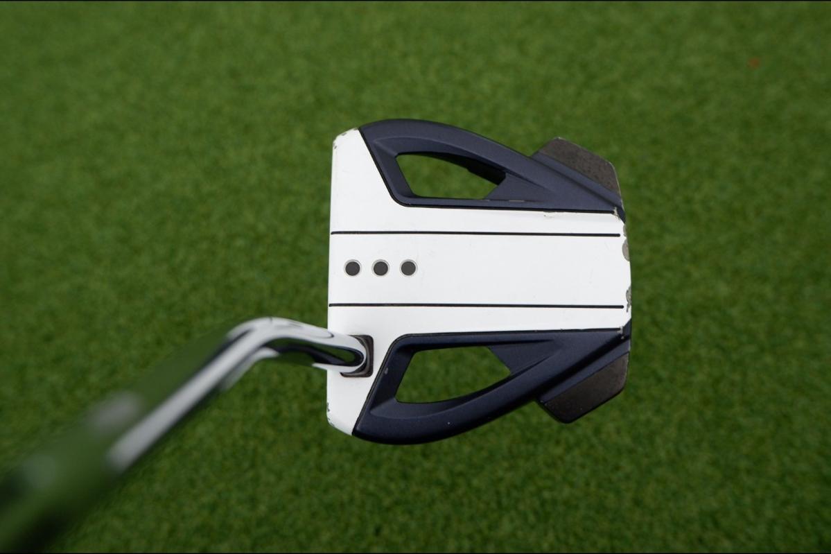PUTTER SPIDER EX NAVY/WHITE 34inch พัตเตอร์ สไปเดอร์ มือ2สภาพ สวย TaylorMade ผลิตจากยูรีเทน TPU สีขาว และมีคานอลูมิเนียมสีเงินทำมุม 45° ได้รับการออกแบบมาเพื่อสร้างลักษณะ และความรู้สึกที่ดีขึ้น อลูมิเนียมน้ำ