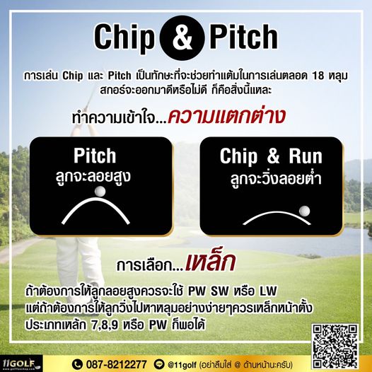 การเล่น Chip และ Pitch เป็นทักษะที่จะช่วยทำแต้มในการเล่นตลอด 18 หลุม สกอร์จะออกมาดีหรือไม่ดี ก็คือสิ่งนี้แหละ ทำความเข้าใจ...ความแตกต่าง . การเลือก...เหล็ก ถ้าต้องการให้ลูกลอยสูงควรจะใช้ PW Sพ หรือ LW แต่ถ้าต้องการไห้ลูกวิ่งไปทาหลุมอย่างง่ายๆควรเกล็กทนาตั้ง ประเภทเหลัก 7,8,9 หรือ PW ก็พอได้